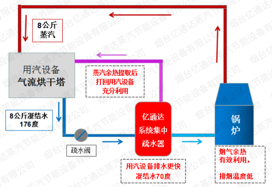 1、一條生產線安裝一套“億通達系統集中疏水器”完成所有的設備排水