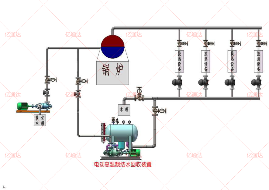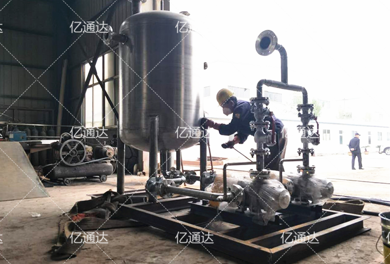 它的工作原理是將換熱設(shè)備經(jīng)疏水閥排出的水、汽混合物匯集到回收裝置的積水罐中,通過(guò)高溫泵將罐內(nèi)的水汽混合物輸送到鍋爐或者其它地方。